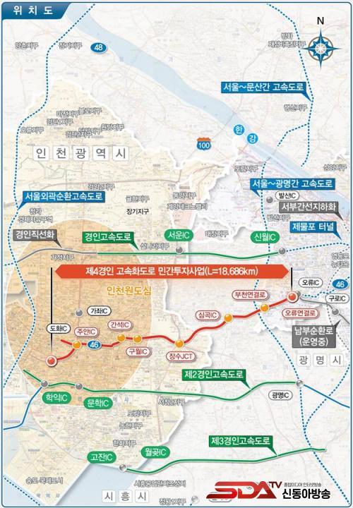Á¦4°æÀΰí¼Óȵµ·Î´Â ÀÎõ½Ã ÃÖÃÊÀÇ µµ½Ã°í¼Óµµ·Î·Î¼ ÀÎõ ¹ÌÃßȦ±¸ ¿ëÇöµ¿¿¡¼ ¼¿ï ±¸·Î±¸ ¿À·ùµ¿À» ¿¬°áÇÏ´Â °ÍÀ¸·Î ÃÑ¿¬Àå 18.7km, ¿Õº¹ 4Â÷·Î ÀÚµ¿Â÷Àü¿ëµµ·ÎÀ̸ç, ÁöÇÏ 70¡80m¸¦ Åë°úÇÏ´Â ´ë½Éµµ ÁöÇϵµ·ÎÀÌ´Ù. ÃÑ»ç¾÷ºñ´Â ¾à 1Á¶ 8,000¾ï ¿øÀÌ ÅõÀÔµÇ°í °ø»ç ±â°£ 5³â, ¹Î°£ÅõÀÚ»ç¾÷ ¹æ½Ä(¼ÕÀͰøÀ¯Çü)À¸·Î ÃßÁøµÈ´Ù.