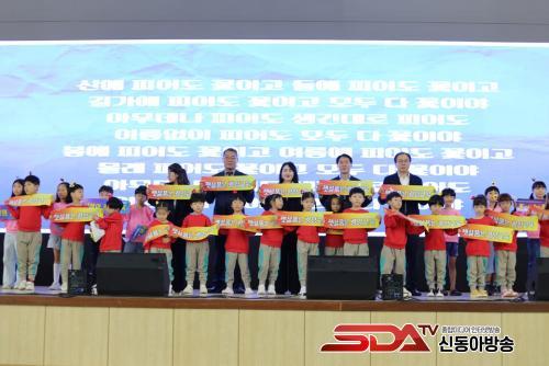 ¸ÕÀú, ½ÄÀü°ø¿¬À¸·Î Áø¿ùÃÊ․ÁßÇб³ ÇлýµéÀÇ »ç¹°³îÀÌ¿Í ±¤¾çÁßÁøÃʵîÇб³ ÇлýµéÀÇ ±â¾ÇÇÕÁÖ°¡ ¿¬ÁֵǾú´Ù. °³¸·½Ä¿¡¼­´Â ±¤¾ç±³À°ÀÇ ºñÀüÀ» ´ãÀº ·¹ÀÌÀú¼î¸¦ ½ÃÀÛÀ¸·Î Çлý 3¸íÀÌ °¢°¢ Çѱ¹¾î, Áß±¹¾î, º£Æ®³²¾î·Î ȯ¿µ Àλ縦 ÇÏ¿´À¸¸ç, °³¸·½Ä¿¡ Âü¼®ÇÑ Çлý․Çкθð․Áö¿ª¹Î ¸ðµÎ°¡ ÇÔ²² Áö¿ªÁß½ÉÀÇ ¹Ì·¡±³À° ½ÇÇöÀ» ´ÙÁüÇÏ´Â °øµ¿¼±Æ÷½ÄÀ» ÇÏ¿´´Ù.
