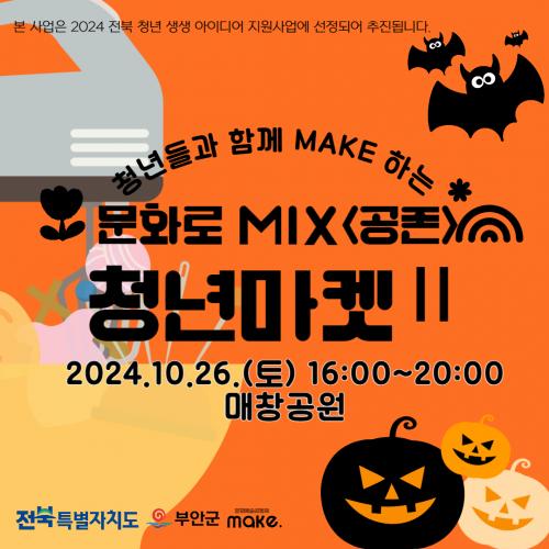 ¹®È¿¹¼ú°øµ¿Ã¼ MAKE´Â 2024³â ÀüºÏ û³â »ý»ý¾ÆÀ̵ð¾î Áö¿ø»ç¾÷ÀÇ ÀÏȯÀ¸·Î <¹®È·Î MIX> ÇÁ·ÎÁ§Æ®¸¦ ÃßÁøÇϰí ÀÖÀ¸¸ç, Áö¿ª û³âµé°ú ÇÔ²² Áö¿ª À̾߱⸦ ¹ß±¼Çϰí À̸¦ ±â¹ÝÀ¸·Î ¹®È¿¹¼ú ÄÜÅÙÃ÷¸¦ °³¹ßÇÏ¿© ÇϳªÀÇ Áö¿ª ºê·£µå·Î ¼ºÀå½Ã۰í ÀÖ´Ù.