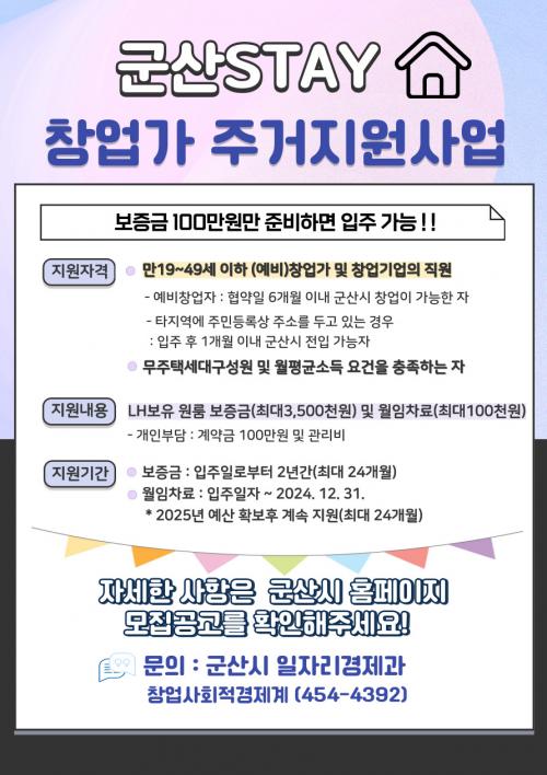 [½Åµ¿¾Æ¹æ¼Û=À̺´½Ä±âÀÚ] 23ÀÏ ±º»ê½Ã´Â 2024³â ¡°±º»ê STAY â¾÷°¡ ÁÖ°ÅÁö¿ø»ç¾÷¡± Âü¿©ÀÚ¸¦ »ó½Ã ¸ðÁýÇÑ´Ù°í ¹àÇû´Ù.