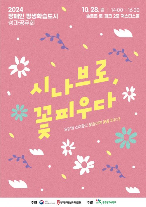 ¡®½Ã³ªºê·Î ²É ÇÇ¿ì´Ù¡¯ ÁÖÁ¦·Î ¿­¸®´Â À̹ø Çà»ç´Â ºÏ±¸ Àå¾ÖÀÎ Æò»ýÇнÀ ÇÁ·Î±×·¥ Âü¿©ÀÚ, À¯°ü±â°ü °ü°èÀÚ µî 100¿© ¸íÀÌ Âü¼®ÇÑ °¡¿îµ¥ ¡®°³È¸ ÆÛÆ÷¸Õ½º¡¯, ¡®ÃàÇϰø¿¬¡¯À» ºñ·ÔÇØ ¡®»ç¾÷¼º°ú ¹ßÇ¥¡¯ µîÀÌ ¿ÀÈÄ 2½ÃºÎÅÍ 4½Ã 30ºÐ±îÁö ÁøÇàµÈ´Ù.