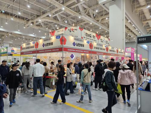 À̹ø ÀüÁÖ±¹Á¦¹ßÈ¿½Äǰ¿¢½ºÆ÷¿¡´Â ³²¿ø ¿ì¼ö ³óƯ»ê¹° È«º¸¡¤ÆÇ¸Å°ü 9°³ ¾÷ü¿Í ±âŸ ¹ßÈ¿½Äǰ ¾÷ü°¡ Âü¿©ÇÏ¿© ±èºÎ°¢°ú Âü±â¸§ µî À¯Áö·ù, µé±úÅÁ, Æ÷µµ»ýÁó, °ÇÁ¶ÀúÀåÀ° ¹× ¿äÁò K-Ǫµå·Î ¶°¿À¸£°í ÀÖ´Â Ä¡Áî¶±, Å©¸²Âý½Ò¶±, ¶±ººÀÌ, Àâ並 ºñ·ÔÇÏ¿© ÀüÅë½ÄǰÀÎ Ãß¾îÅÁ µîÀ» Àü½ÃÇÏ¿© ÆÇ¸ÅÇÑ´Ù.