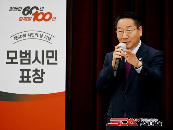 »çÁø=À¯Á¤º¹ ÀÎõ±¤¿ª½ÃÀåÀÌ 28ÀÏ ½Ãû ´ëȸÀǽǿ¡¼­ ¿­¸° 'Á¦60ȸ ½Ã¹ÎÀdz¯ ±â³ä ¸ð¹ü½Ã¹Î ǥâ ¼ö¿©½Ä'¿¡¼­ Àλ縻À» Çϰí ÀÖ´Ù.