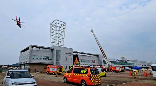 ¡â°¢ ±â°ü Çù·Â ¹× ÀÓ¹«¼÷´Þ ¡âÅëÇÕÀç³­ ´ëÀÀü°è Á¡°ËÀ» ¸ñÇ¥·Î ÇÑ À̹ø ÈÆ·Ã¿¡´Â ±¸Á¶Çï±â¸¦ Æ÷ÇÔÇØ Àü±âÂ÷ È­Àç¿ë ¹°¸·ÀÌÆÇ µî ´Ù¾çÇÑ Àåºñ°¡ µ¿¿øµÅ ½ÇÀü ±ä±Þ »óȲÀÌ ÀçÇöµÆ´Ù.