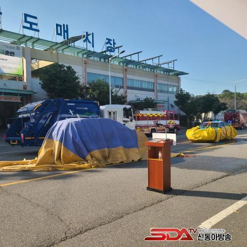 »çÁø=¼øÃµ½Ãû, ¼øÃµ½Ã ³ó»ê¹°µµ¸Å½ÃÀå¿¡¼­ À¯°ü±â°ü°ú ÇÔ²² Àü±âÂ÷ È­Àç Áø¾ÐÈÆ·ÃÀ» ½Ç½ÃÇß´Ù