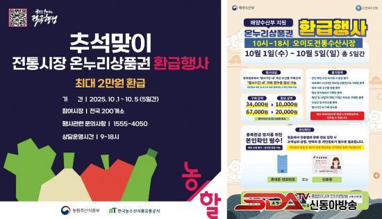 [½Åµ¿¾Æ¹æ¼Û ½ÃÈï½Ã=À̽ŵ¿±âÀÚ] ½ÃÈï½Ã´Â Ãß¼® ¸íÀýÀ» ¾ÕµÎ°í ÀüÅë½ÃÀå ¼Òºñ ÃËÁø°ú Àå¹Ù±¸´Ï ¹°°¡ ºÎ´ã ¿ÏÈ­¸¦ À§ÇØ ¿À´Â 10¿ù 1ÀϺÎÅÍ 5ÀϱîÁö 5Àϰ£ ¿ÀÀ̵µÀüÅë¼ö»ê½ÃÀå°ú »ï¹Ì½ÃÀå¿¡¼­ ¡®¿Â´©¸®»óǰ±Ç ȯ±ÞÇà»ç¡¯¸¦ ÃßÁøÇÑ´Ù.