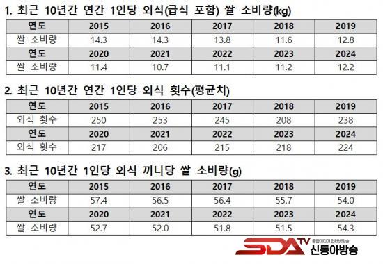 °ú°Å 10³â°£ Åë°è¿¡ µû¸£¸é ¿Ü½Ä ½Ò ¼Òºñ·®Àº 2015³â 14.3kg¿¡¼­ 2024³â 12.2kg·Î °¨¼ÒÇßÁö¸¸, ½ÇÁ¦ ½Ä»ýȰ º¯È­¿Í´Â ¹«°üÇÏ°Ô Á¶»ç »ê½Ä ÀÚü°¡ º¯ÇÏÁö ¾Ê¾Æ Åë°è ¿Ö°î °¡´É¼ºÀÌ ³ô´Ù´Â ÁöÀûÀÌ´Ù.