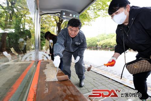 ¹ö½ºÁ¤·ùÀå º¥Ä¡ µµ»öÀÛ¾÷Àº ³²µ¿±¸ ÅëÀ忬ÇÕȸ°¡ ÁÖ°üÇÏ´Â '±ô³É±ô³É ÁÁÀº ¸¶À»¸¸µé±â' »ç¾÷À¸·Î ÃßÁøµÆ´Ù. ÀÌ »ç¾÷Àº ¹ö½ºÁ¤·ùÀå¿¡ ³«ÈÄµÈ º¥Ä¡¸¦ º¸¼öÇØ ÁֹΠ¸ðµÎ°¡ Æí¾ÈÇÏ°Ô ÀÌ¿ëÇÒ ¼ö ÀÖ´Â ÀÚ¸®·Î ¹Ù²Ù´Â °ÍÀ¸·Î '2025³â ³²µ¿±¸ ¸¶À»¸¸µé±â °ø¸ð»ç¾÷¡¯¿¡ ¼±Á¤µÆ´Ù.