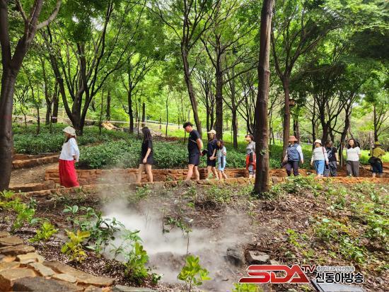 ƯÈ÷ ¿ÃÇØ ¿©¸§, ÁýÁßÈ£¿ì·Î ÀϺΠ±¸°£ÀÌ À¯½ÇµÆÀ¸³ª ±× ÈçÀûÀ» º¹±¸ÇÏ´Â °úÁ¤¿¡¼ ¹°ÀÌ È帣´Â ¼Ò¸®°¡ ½£¼Ó¿¡ ÀºÀºÈ÷ ÆÛÁö´Â ¡®¹°¼Ò¸®¿ø¡¯ÀÌ »õ·Ó°Ô Á¶¼ºµÆ´Ù. ¶ÇÇÑ ÁöÇüÀû °î¼±À» ±×´ë·Î ǰÀº ¡®»êµ¹¸¶´ç¡¯ Àº ¿ù¾Æ»êÀÇ »ê¼®À» Ȱ¿ëÇØ µ¹°ú ºûÀÇ °áÀÌ ¾î¿ì·¯Áö´Â ÀÚ¿¬Çü °ø°£À¸·Î ¿Ï¼ºµÆ´Ù.