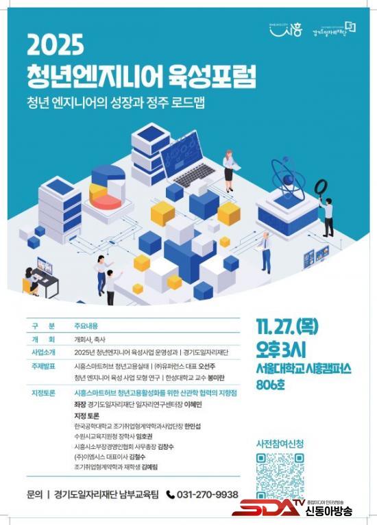 [½Åµ¿¾Æ¹æ¼Û ½ÃÈï½Ã=À̽ŵ¿±âÀÚ] ½ÃÈï½Ã¿Í °æ±âµµÀÏÀÚ¸®Àç´ÜÀº ¿À´Â 11¿ù 27ÀÏ ¿ÀÈÄ 3½Ã, ¼­¿ï´ëÇб³ ½ÃÈïÄ·ÆÛ½º 806È£¿¡¼­ ¡®2025 û³â ¿£Áö´Ï¾î À°¼º Æ÷·³¡¯À» °³ÃÖÇÑ´Ù.