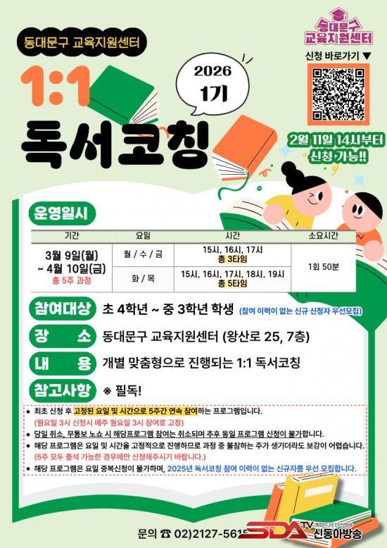 [½Åµ¿¾Æ¹æ¼Û µ¿´ë¹®±¸=À̽ŵ¿±âÀÚ] ¼­¿ï µ¿´ë¹®±¸°¡ Çлý ¸ÂÃãÇü µ¶¼­±³À° ÇÁ·Î±×·¥ÀÎ ¡®2026³â »ó¹Ý±â 1:1 µ¶¼­ÄÚĪ¡¯À» ¿î¿µÇÑ´Ù.