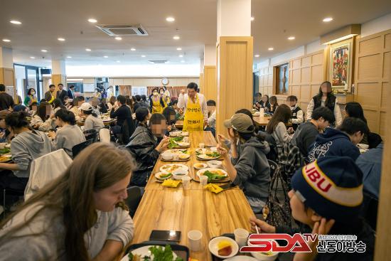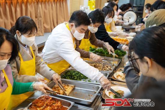 ½º´Ôµé°ú ÀÚ¿øºÀ»çÀÚµéÀÌ ºÐÁÖÈ÷ À½½ÄÀ» ³ª¸£°í, °ø¾ç°£ ¾Õ¿¡¼´Â Çлýµé³¢¸® ¡°¿À´Ã ¸Þ´º°¡ ¹¹³Ä¡±¸ç ¿ôÀ½ ¼¯ÀÎ ´ëȸ¦ ÁÖ°í¹Þ¾Ò´Ù. ±× ÁÙ ¾Õ¿¡ ÀÌÇÊÇü µ¿´ë¹®±¸Ã»Àåµµ ¼¹´Ù. Çлýµé¿¡°Ô Á÷Á¢ À½½ÄÀ» °Ç³×¸ç ¡°¹ä Àß Ã¬°Ü ¸Ô°í, Çо÷°ú ¹Ì·¡ Áغñµµ Èû³»¶ó¡±°í ¸»À» °Ç³Þ´Ù. ÀÌ ±¸Ã»ÀåÀº ¿¬È»ç ¡®Ã»³â¹äãý¡¯ ÇöÀå¿¡¼ ¹è½ÄÀÚ·Î Âü¿©ÇØ ´ëÇлýµéÀ» °Ý·ÁÇß´Ù.