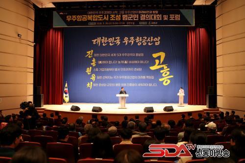 À̹ø Çà»ç´Â °íÈïÀÌ ´ëÇѹα¹ ¿ìÁÖ»ê¾÷ÀÇ Á᫐ °ÅÁ¡À¸·Î ÇÑ ´Ü°è ´õ µµ¾àÇϱâ À§ÇÑ °ø°¨´ë¸¦ È®»êÇϰí, ¡®¿ìÁÖÇ×°øº¹ÇÕµµ½Ã Áö¿ø ¹× °Ç¼³¿¡ °üÇÑ Æ¯º°¹ý Á¦Á¤¡¯°ú ¡®¿ìÁÖÇ×°ø»ê¾÷ÁøÈï¿ø¡¯ À¯Ä¡ ´çÀ§¼ºÀ» ´ë³»¿Ü¿¡ ³Î¸® ¾Ë¸®±â À§ÇØ ¸¶·ÃµÆ´Ù.