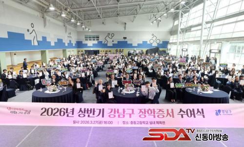 [½Åµ¿¾Æ¹æ¼Û °­³²±¸=À̽ŵ¿±âÀÚ] ²ÞÀÌ ¸ðÀÌ´Â µµ½Ã, ¹Ì·¡¸¦ ±×¸®´Â °­³²±¸°¡ Áö³­ 27ÀÏ Áßµ¿°íµîÇб³ ½Ç³»Ã¼À°°ü¿¡¼­ ¡®2026³â »ó¹Ý±â °­³²±¸ ÀåÇÐÁõ¼­ ¼ö¿©½Ä¡¯À» ¿­°í ÀåÇлý 202¸í¿¡°Ô ÃÑ 3¾ï7200¸¸ ¿øÀÇ ÀåÇбÝÀ» Àü´ÞÇß´Ù.