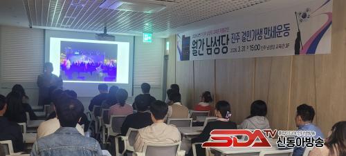 ¡®¿ù°£ ³²¼º´ç¡¯Àº ±èÀåÇÏ ¼±»ýÀÇ ³ª´®°ú ¹è·ÁÀÇ Á¤½ÅÀ» ¹ÙÅÁÀ¸·Î ÁøÁÖ Áö¿ªÀÇ ¿ª»ç¿Í Àι°À» Á¶¸íÇϰí, ¡®ÁøÁÖ Á¤½Å¡¯À» ÇÔ²² ³ª´©±â À§ÇØ ¸¶·ÃµÈ ÇÁ·Î±×·¥ÀÌ´Ù. À̹ø 3¿ù °­Á´ ÀÌ·¯ÇÑ ÃëÁö¸¦ ¹ÙÅÁÀ¸·Î ¡®ÁøÁÖ °ÉÀΡ¤±â»ý ¸¸¼¼¿îµ¿¡¯À» ÁÖÁ¦·Î ÁøÇàµÆ´Ù.