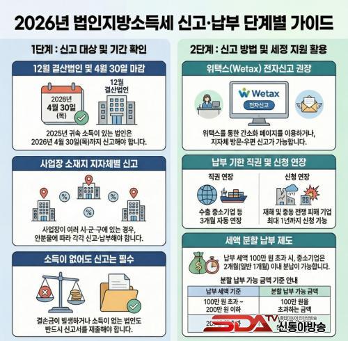 ½Å°í ´ë»óÀº 12¿ù ¸» °á»ê¹ýÀÎÀÇ 2025³â ±Í¼Ó ¹ýÀμҵæÀ¸·Î, »ç¾÷½ÇÀûÀÌ ¾ø°Å³ª °á¼ÕÀÌ ¹ß»ýÇÑ ¹ýÀεµ Æ÷ÇԵȴÙ. ½Å°í´Â À§Åýº¸¦ ÅëÇÑ ÀüÀÚ½Å°í ¶Ç´Â ¼øÃµ½Ã ¼¼Á¤°ú·Î ¿ìÆí¡¤¹æ¹® ½Å°íµµ °¡´ÉÇÏ´Ù.