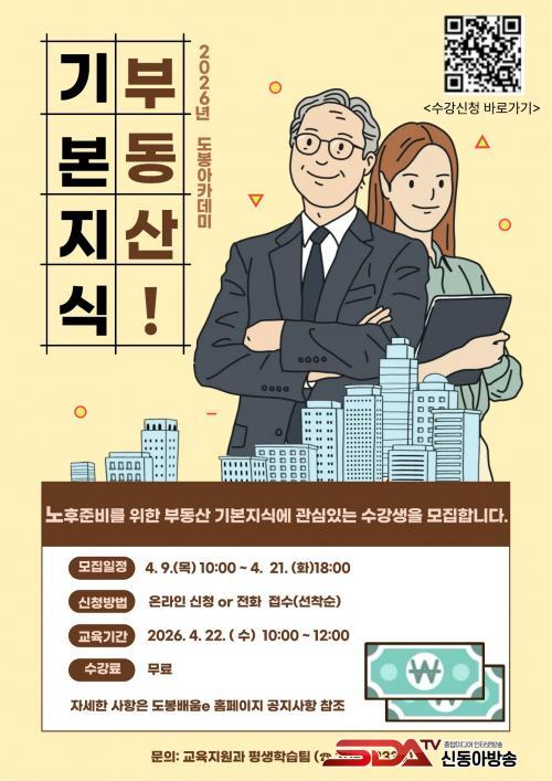 ¸ðÁý ´ë»óÀº µµºÀ±¸¹ÎÀ̸ç, °­Á ½ÅûÀº 4¿ù 21ÀÏ ¿ÀÈÄ 6½Ã±îÁö ¿Â¶óÀÎ(µµºÀ¹è¿òe) ¶Ç´Â ÀüÈ­(2091-2333)·Î ÇÏ¸é µÈ´Ù. ÃÑ 80¸í ¼±Âø¼øÀ¸·Î Á¢¼öÇÑ´Ù.