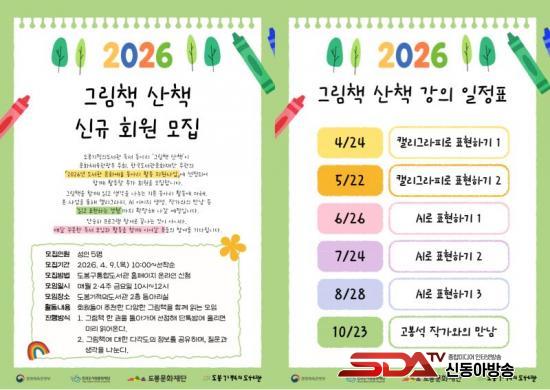 [½Åµ¿¾Æ¹æ¼Û µµºÀ±¸=À̽ŵ¿±âÀÚ] ¼­¿ï µµºÀ±¸ µµºÀ±âÀûÀǵµ¼­°üÀÌ µ¶¼­µ¿¾Æ¸® ¡®±×¸²Ã¥ »êÃ¥¡¯À» È®´ë ¿î¿µÇÑ´Ù. ¡®±×¸²Ã¥ »êÃ¥¡¯Àº ±×¸²Ã¥À» ÇÔ²² Àаí À̾߱⸦ ³ª´©´Â ¼ºÀÎ µ¶¼­ µ¿¾Æ¸®´Ù. ¾Õ¼­ µµ¼­°üÀº ¹®È­Ã¼À°°ü±¤ºÎ¿Í Çѱ¹µµ¼­°ü¹®È­Àç´ÜÀÌ ÃßÁøÇÏ´Â ¡®2026³â µµ¼­°ü ¹®È­¿¹¼ú µ¿¾Æ¸® Ȱµ¿ Áö¿ø»ç¾÷¡¯¿¡ ¼±Á¤µÆ´Ù.