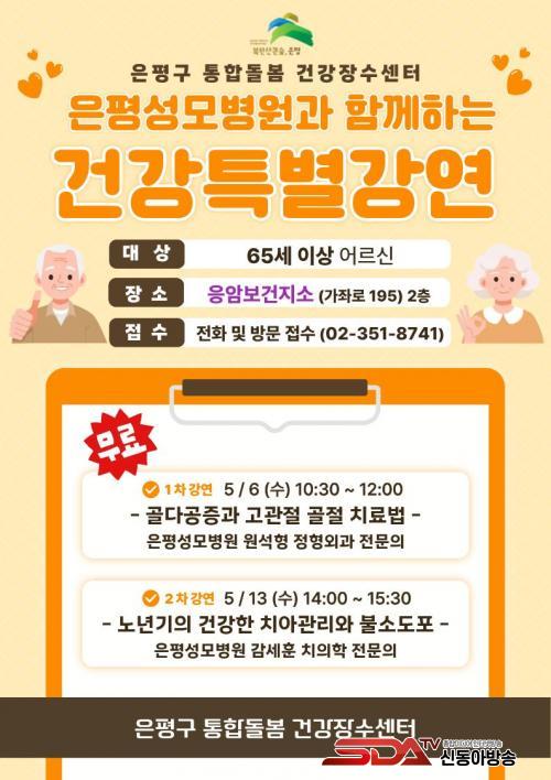 À̹ø °¿¬Àº ÀºÆò±¸ ÅëÇÕµ¹º½ °Ç°Àå¼ö¼¾ÅÍ¿¡¼ ÁøÇàµÇ¸ç, ³ë³â±â¿¡ ÀÚÁÖ ¹ß»ýÇÏ´Â ÁÖ¿ä ÁúȯÀÇ ¿¹¹æ°ú °ü¸®¸¦ ÁÖÁ¦·Î 2ȸ¿¡ °ÉÃÄ ÁøÇàµÈ´Ù. ÀºÆò¼º¸ðº´¿ø Àü¹®Àǰ¡ Á÷Á¢ °ÀÇÇØ ½Å·Úµµ ³ôÀº °Ç° Á¤º¸¸¦ Á¦°øÇÑ´Ù.