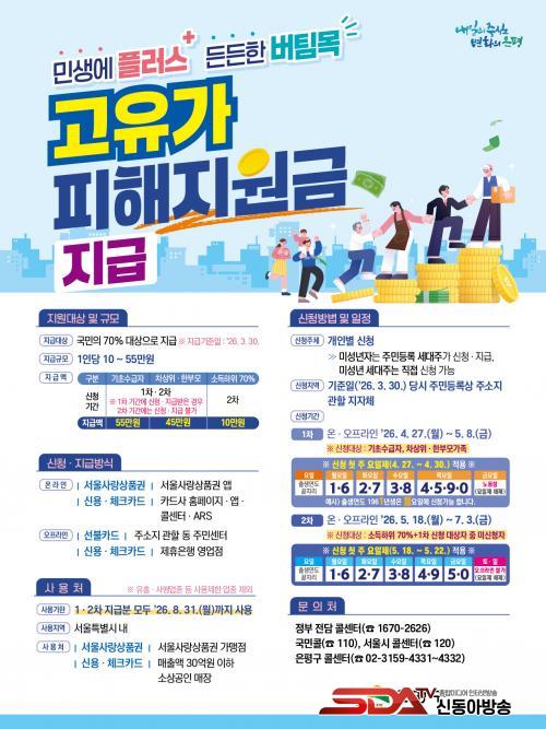 Áö±Þ ´ë»óÀº 2026³â 3¿ù 30ÀÏ ±âÁØ ÀºÆò±¸¿¡ Áֹεî·ÏÀ» µÐ ±¸¹ÎÀÌ´Ù. ±¸´Â ´ë»óº° ¿©°ÇÀ» °í·ÁÇØ 1Â÷¿Í 2Â÷·Î ³ª´©¾î ´Ü°èÀûÀ¸·Î Áö¿ø±ÝÀ» Áö±ÞÇÑ´Ù. 1Â÷·Î ±âÃÊ»ýȰ¼ö±ÞÀÚ, Â÷»óÀ§°èÃþ, ÇѺθð°¡Á·À» ¿ì¼± Áö¿øÇϸç, 2Â÷´Â ¼Òµæ ÇÏÀ§ 70%¿¡ ÇØ´çÇÏ´Â ±¸¹Î±îÁö ´ë»óÀ» È®´ëÇØ ÃßÁøÇÑ´Ù.