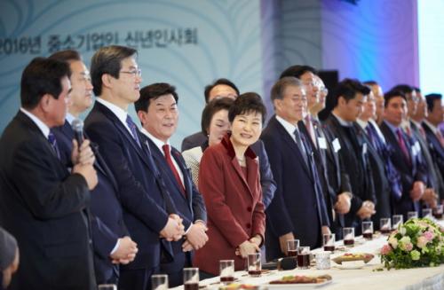 ºò±ÙÇý ´ëÅë·ÉÀÌ 18ÀÏ ¿ÀÈÄ ¼­¿ï ¿©Àǵµ Áß¼Ò±â¾÷Áß¾Óȸ¿¡¼­ ¿­¸° 2016³â Áß¼Ò±â¾÷ÀÎ ½Å³âÀλçȸ¿¡ Âü¼®Çϰí ÀÖ´Ù.