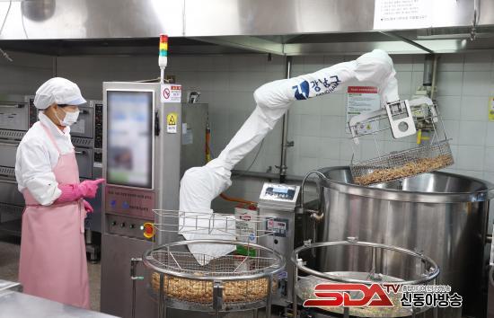 ½ÇÁõ ¸ðµ¨Àº Çùµ¿·Îº¿(·Îº¿ÆÈ)°ú Á¦¾îPC, ¼ÜÀ¸·Î ±¸¼ºµÆ´Ù. Á¦¾îPC¿¡¼ ½º¸¶Æ®¼Ü ÀÚµ¿Á¡È, ¹° ÀÚµ¿ ¹èÃâ µî °øÁ¤À» ¿ø°Ý Á¦¾îÇØ, ±âÁ¸Ã³·³ ¼Ü ¾Õ¿¡¼ Á¡ÈÇϰųª Á¶ÀÛÇØ¾ß Çß´ø ¹Ýº¹ ÀÛ¾÷ ºÎ´ãÀ» ÁÙ¿´´Ù. ƯÈ÷ ½ÃÁß ±Þ½Ä Á¶¸®·Îº¿ÀÌ ÁÖ·Î Àü±â ±â¹Ý ¼³ºñ¿¡ ¸ÂÃç ¼³°èµÇ´Â °Í°ú ´Þ¸®, Çб³ ±Þ½Ä½Ç¿¡ ÀÌ¹Ì ±¸ÃàµÈ °¡½º¡¤½ºÆÀ ±â¹Ý ¼Ü ÀÎÇÁ¶ó¸¦ ±×´ë·Î Ȱ¿ëÇÏ¸é¼ À̸¦ ÀÚµ¿ Á¦¾îÇÏ´Â ·Îº¿ ½Ã½ºÅÛÀ» ±¹³» ÃÖÃÊ·Î °³¹ßÇØ Àû¿ëÇß´Ù. ±âÁ¸ Æ¢±è¡¤±¹ÅÁ Á߽ɿ¡¼ ººÀ½±îÁö °¡´ÉÇÑ ¡®3in1¡¯ ´Ù±â´É Á¶¸® ·Îº¿ ½Ã½ºÅÛÀ» ±¸ÇöÇØ Á¶¸® °øÁ¤ ¹üÀ§¸¦ ³ÐÇû´Ù.