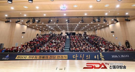 28ÀÏ ¿ÀÈÄ °³ÃÖµÈ ¡®Çϳ²½Ã ±âºÎÀÚ ¸í¿¹ÀÇ Àü´ç ÇåÁ¤½Ä : ´ç½ÅÀÇ À̸§¡¯¿¡¼­ ÀÌÇöÀç Çϳ²½ÃÀåÀÌ °¨»çÆÐ¸¦ Àü´ÞÇϰí ÀÖ´Ù.