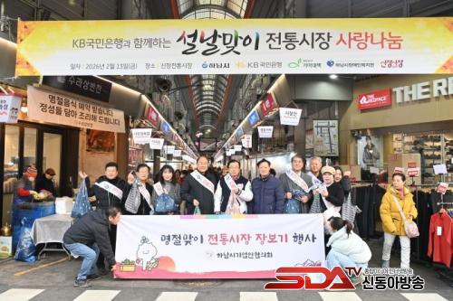 ÀÌÇöÀç Çϳ²½ÃÀå°ú ±è½ÂÇö Çϳ²½Ã±â¾÷ÀÎÇùÀÇȸ ȸÀå ¹× ÀÓ¿øÁøÀÌ 12ÀÏ ¿ÀÈÄ ½ÅÀåÀüÅë½ÃÀåÀ» ¹æ¹®ÇØ ½Ã¹Îµé¿¡°Ô ÀüÅë½ÃÀå ÀÌ¿ëÀ» ´çºÎÇÏ´Â Ä·ÆäÀÎÀ» ÆîÄ£ ÈÄ ±â³äÃÔ¿µÀ» Çϰí ÀÖ´Ù.