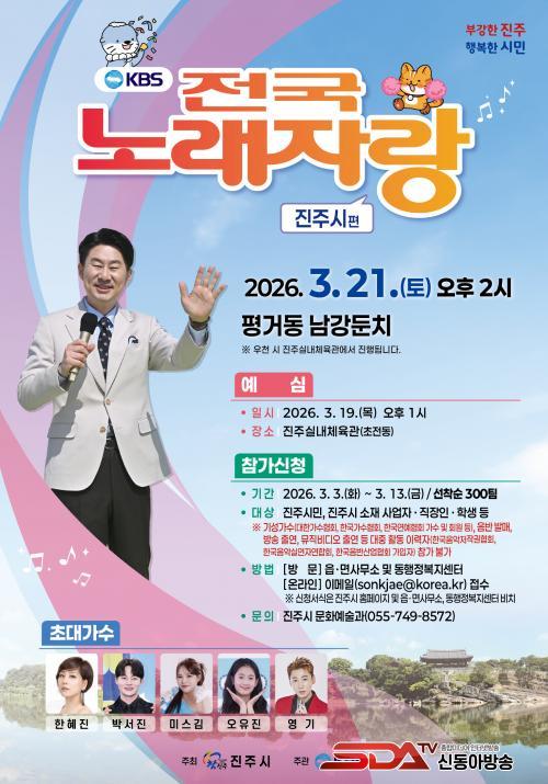 ÁøÁֽô ¿À´Â 3¿ù 21ÀÏ Åä¿äÀÏ ¿ÀÈÄ 2½Ã, Æò°Åµ¿ ³²°­ µÐÄ¡¿¡¼­ ¡®KBS Àü±¹³ë·¡ÀÚ¶û ÁøÁֽà Æí¡¯À» °³ÃÖÇÑ´Ù°í ¹àÇû´Ù.