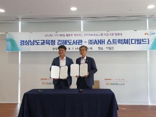 °æ»ó³²µµ±³À°Ã» ±èÇØµµ¼­°ü(°üÀå ±è¾ðÅÂ)Àº 8¿ù 7ÀÏ ±³À°ºÎ°¡ ÁÖÃÖÇϴ¡¸2019³â Áö¿ª±â°üÀ» Ȱ¿ëÇÑ STEAM ÇÁ·Î±×·¥ °³¹ß »ç¾÷¡¹ÀÇ ¼º°øÀûÀÎ »ç¾÷ ¼öÇàÀ» À§ÇØ µð¿ùµå/(ÁÖ)ANH½ºÆ®·°ÃÄ¿Í ¾÷¹«Çù¾à(MOU)À» ü°áÇß´Ù. À̹ø Çù¾àÀº ±èÇØµµ¼­°üÀÌ °æ³²µµ³» ÁßÇб³ 6°³±³¡¦