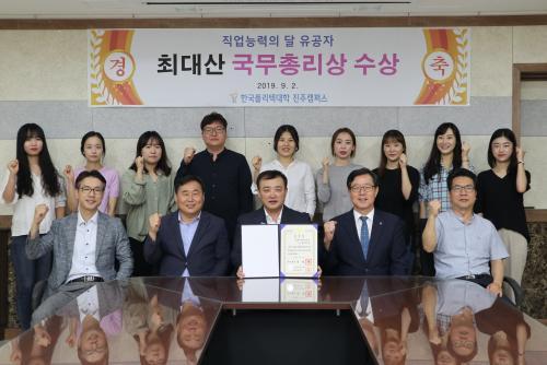 Çѱ¹Æú¸®ÅØ´ëÇÐ ÁøÁÖÄ·ÆÛ½º(ÇÐÀå ¹Ú¹®¼ö) »êÇÐÇù·Âó ÃÖ´ë»ê ÆÀÀåÀÌ 9¿ù 2ÀÏ ½¦¶óÅæ ¼­¿ï µðÅ¥ºê½ÃƼ¿¡¼­ ¿­¸° ¡®2019 Á÷¾÷°³¹ß´É·ÂÀÇ ´Þ ±â³ä½Ä¡¯¿¡¼­ Á¤ºÎÆ÷»ó ´ë»óÀÚ·Î ¼±Á¤µÇ¾î ±¹¹«ÃѸ® ǥâÀ» ¹Þ¾Ò´Ù. ÃÖ´ë»ê ÆÀÀåÀº 16³â°£ ³ëµ¿ºÎ Á÷¾÷´É·Â°³¹ß »ç¾÷ ¹× HR¡¦