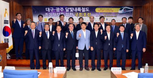 Á¤Á¾Á¦ ±¤ÁÖ±¤¿ª½Ã ÇàÁ¤ºÎ½ÃÀåÀÌ ÃÖ±Ù ¼­¿ï ±¹È¸µµ¼­°ü ¼ÒȸÀǽǿ¡¼­ ¿­¸° ±¤ÁÖ-´ë±¸ ´Þºû³»·úöµµ Á¶±â°Ç¼³À» À§ÇÑ ±¹È¸Æ÷·³¿¡ Âü¼®ÇØ Âü¼®ÀÚµé°ú ±â³äÃÔ¿µÀ» Çϰí ÀÖ´Ù.