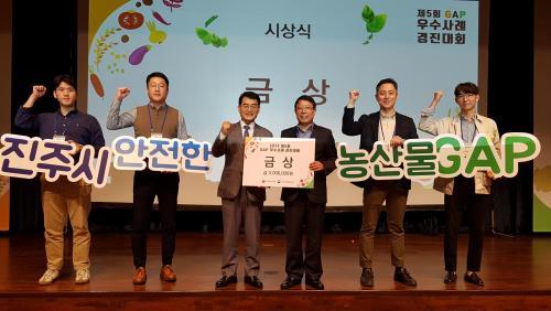 ÁøÁֽô Áö³­ 16ÀÏ ¼­¿ï ¾çÀ絿 aT¼¾ÅÍ¿¡¼­ ³ó¸²Ãà»ê½ÄǰºÎ¿Í ±¹¸³³ó»ê¹°Ç°Áú°ü¸®¿øÀÌ ÁÖÃÖÇÏ´Â Á¦5ȸ GAP ¿ì¼ö»ç·Ê °æÁø´ëȸ¿¡¼­ ÁøÁֽóóÇùÁ¶ÇÕ°øµ¿»ç¾÷¹ýÀÎÀÌ ±Ý»óÀ» ¼ö»óÇß´Ù°í ¹àÇû´Ù. À̹ø ´ëȸ´Â ¼­·ù½É»ç¿Í ÇöÀåÆò°¡ °á°ú »ý»êºÎ¹® 7°Ç, À¯ÅëºÎ¹® 4°Ç¡¦