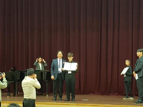 â¿øÃµ±¤Çб³(±³Àå ¹ÚÀÎÈ£) Çã½Â¿ì(ÃÊ2)±ºÀÌ Àü±¹ Àå¾ÖÇлý À½¾ÇÄáÄí¸£¿¡¼­ ±Ý»óÀ» ¼ö»óÇÏ´Â ¿µ¿¹¸¦ °¡Á³´Ù. Çã½Â¿ì ÇлýÀº Á¤ºÎ¼¼Á¾ÄÁº¥¼Ç¼¾ÅÍ ±¹Á¦È¸ÀÇÀå¿¡¼­ ¿­¸° ¡®Á¦12ȸ Àü±¹ Àå¾ÖÇлý À½¾ÇÄáÄí¸£¡¯ ¼­¾çÀ½¾Ç °üÇö¾Ç °³ÀÎ ºÎ¹®¿¡ ÃâÀü, ºñ¹ßµð ¹ÙÀ̿ø° ÇùÁְ