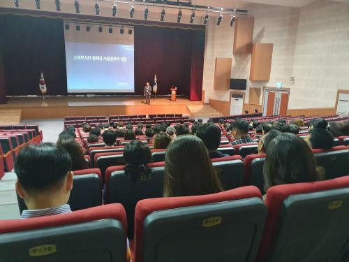 [½Åµ¿¾Æ¹æ¼Û ±è¿ëÈÆ ±âÀÚ] ¿©¼ö½Ã°¡ Áö³­ 30ÀÏ ¿©¼ö¹®È­È¦¿¡¼­ ½Ãû °øÁ÷ÀÚ 400¸íÀ» ´ë»óÀ¸·Î ¡®½º¸¶Æ®µµ½Ã ¸¶Àεå ÇÔ¾ç ±³À°¡¯À» ÁøÇàÇß´Ù. À̳¯ ±³À°¿¡ ³ª¼± Á¶¿µÅ LH ½º¸¶Æ®½ÃƼ¿¬±¸¼¾ÅÍÀåÀº ¡®½º¸¶Æ®µµ½Ã¿Í Áö¹æÁ¤ºÎÀÇ ¿ªÇÒ¡¯À̶ó´Â ÁÖÁ¦·Î °­¿¬À» ÆîÃÆ´Ù. ¡¦