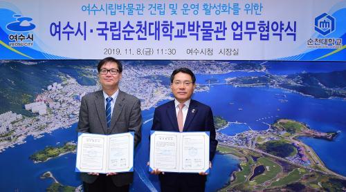 [½Åµ¿¾Æ¹æ¼Û ±è±â³² ÃëÀç º»ºÎÀå] ¿©¼ö½Ã¿Í ±¹¸³ ¼øÃµ´ëÇб³ ¹Ú¹°°üÀÌ ¾÷¹«Çù¾àÀ» ¸Î°í ¿©¼ö½Ã¸³¹Ú¹°°ü °Ç¸³¿¡ ÈûÀ» ¸ðÀ¸±â·Î Çß´Ù. ¿©¼ö½Ã´Â 8ÀÏ ¿ÀÀü ¿©¼ö½Ãû ½ÃÀå½Ç¿¡¼­ ±Ç¿ÀºÀ ¿©¼ö½ÃÀå°ú ÀÌ¿í ¼øÃµ´ë ¹Ú¹°°üÀåÀÌ ¡®¿©¼ö½Ã¸³¹Ú¹°°ü °Ç¸³ ¹× ¿î¿µ Ȱ¼ºÈ­¸¦ À§ÇÑ¡¦