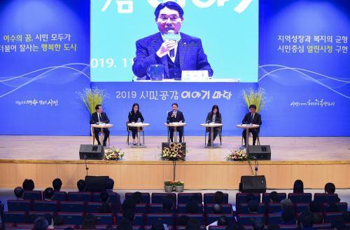[½Åµ¿¾Æ¹æ¼Û=±è±â³² ÃëÀç º»ºÎÀå] ¿©¼ö½Ã(½ÃÀå ±Ç¿ÀºÀ)´Â 8ÀÏ ¿ÀÈÄ ¿©¼ö¹®È­È¦¿¡¼­ 2019 ½Ã¹Î°ø°¨ À̾߱⸶´çÀ» °³ÃÖÇß´Ù. À̹ø À̾߱⸶´çÀº ¡®½Ã¹Î°ú ÇÔ²² »õ·Ó°Ô µµ¾àÇÏ´Â ¿©¼ö, ¹Î¼±7±â °ø¾à»çÇ× Á¡°Ë¡¯ À» ÁÖÁ¦·Î ±×µ¿¾È ±Ç ½ÃÀåÀÇ °ø¾à»çÇ× ¹× ½ÃÁ¤¿î¿µ Ȱµ¿ µî¡¦