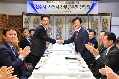ÁøÁÖ½Ã¿Í »çõ½Ã´Â 19ÀÏ Àú³á Á¶±ÔÀÏ ÁøÁÖ½ÃÀå°ú ¼Ûµµ±Ù »çõ½ÃÀå ¿Ü ¾ç ½Ã ºÎ½ÃÀå°ú ±¹Àå±Þ °£ºÎ°ø¹«¿øÀÌ Âü¼®ÇÏ´Â °£´ãȸ¸¦ °¡Á³´Ù. Áö³­ 7¿ù 22ÀÏ »çõ½Ã¿¡¼­ ÀÖ¾ú´ø ù ¹øÂ° ¸¸³²¿¡ ÀÌ¾î µÎ ¹øÂ°·Î ÁøÁֽÿ¡¼­ °³ÃÖµÈ À̹ø °£´ãȸ´Â ÀÌ¿ôÇÑ µÎ ÁöÀÚü°£¡¦