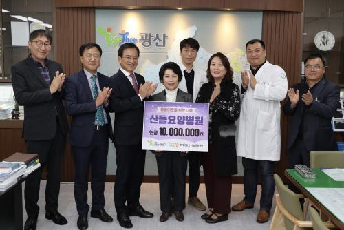 [½Åµ¿¾Æ¹æ¼Û=°­¼º´ë ±âÀÚ] ±¤ÁÖ ±¤»ê±¸ »êµé¿ä¾çº´¿ø(º´¿øÀå Á¤¼ºÀ±)ÀÌ 10ÀÏ °Ü¿ï º¹Áö»ç°¢Áö´ë µ¹º½ ÀÌ¿ôÀ» À§ÇØ ½á´Þ¶ó¸ç ±¤»ê±¸¸¦ ÅëÇØ Åõ°Ô´õ±¤»ê ³ª´®¹®È­Àç´Ü¿¡ ¸Å³â 1,000¸¸¿ø¾¿ 5³â°£ ÃÑ 5,000¸¸¿øÀ» ±âºÎÇÒ °ÍÀ» ¾à¼ÓÇß´Ù. ±¤»ê±¸Ã»¿¡¼­ ¿­¸° ¼º±Ý Àü´Þ½Ä¿¡¡¦