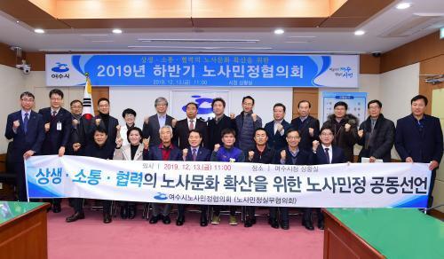 [½Åµ¿¾Æ¹æ¼Û=±è±â³² ±âÀÚ] ¿©¼ö½Ã ³ë‧»ç‧¹Î‧Á¤ÀÌ »ó»ý°ú ¼ÒÅë, Çù·ÂÀ» ´ÙÁüÇÏ´Â °øµ¿¼±¾ð¹®À» äÅÃÇß´Ù. 13ÀÏ ¿©¼ö½Ã¿¡ µû¸£¸é À̳¯ ¿ÀÀü ¿©¼ö½Ãû »óȲ½Ç¿¡¼­ ¡®2019³â ÇϹݱ⠿©¼ö½Ã ³ë»ç¹ÎÁ¤ÇùÀÇȸ ȸÀÇ¡¯°¡ ¿­·È´Ù. ÀÌ ÀÚ¸®¿¡´Â ±Ç¿ÀºÀ ¿©¡¦