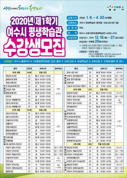 [½Åµ¿¾Æ¹æ¼Û=±è¿ëÈÆ ±âÀÚ] ¿©¼ö½Ã(½ÃÀå ±Ç¿ÀºÀ)°¡ ³»³âµµ 1ÇÐ±â Æò»ýÇнÀ°ü ¼ö°­»ý 1500¸íÀ» ¿À´Â 27ÀϱîÁö ¸ðÁýÇÑ´Ù°í 17ÀÏ ¹àÇû´Ù. °³¼³ °­Á´ ÃÑ 61°³·Î ¿©¼ö½Ã¹ÎÀÌ¸é ´©±¸³ª ÇÁ·Î±×·¥¿¡ Âü¿©ÇØ ±³À°¹ÞÀ» ¼ö ÀÖ´Ù. ±³À° Àå¼Ò´Â ¿õõµ¿ À̼ø½Åµµ¼­°üÀ̸ç, ÇÁ¡¦
