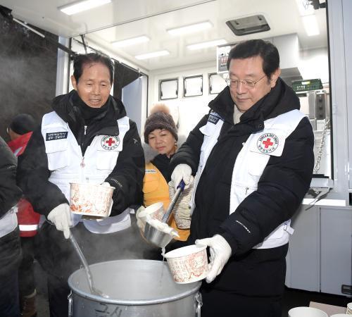 [½Åµ¿¾Æ¹æ¼Û=°­¼º´ë ±âÀÚ] À̿뼷 ±¤ÁÖ±¤¿ª½ÃÀåÀÌ 1ÀÏ ¿ÀÀü µ¿±¸ Áõ½É»ç ޹æ¾È³»¼¾ÅÍ ¾Õ¿¡¼­ ¿­¸° ¡®°æÀڳ⠻õÇØ¸ÂÀÌ ¶±±¹ ³ª´® Çà»ç¡¯¿¡¼­ Àû½ÊÀÚ»ç ȸ¿øµé°ú ÇÔ²² ¹«µî»ê µî¹Ý°´µéÀ» À§ÇÑ ¶±±¹ ¹è½Ä ºÀ»çȰµ¿À» Çϰí ÀÖ´Ù.