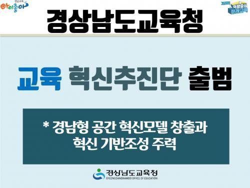 [½Åµ¿¾Æ¹æ¼Û=±è´ë¿ø ±âÀÚ] °æ»ó³²µµ±³À°Ã»(±³À°°¨ ¹ÚÁ¾ÈÆ)ÀÌ ±³À° Çõ½ÅÃßÁø´ÜÀ» ½Å¼³, °æ³²Çü °ø°£Çõ½Å¸ðµ¨ âÃâ°ú Çõ½Å±â¹Ý Á¶¼º¿¡ ³ª¼¹´Ù. °æ³²±³À°Ã»Àº 2020³âÀ» ¡®±³À° Çõ½Å ¿ø³âÀÇ ÇØ¡¯·Î ¼±Æ÷Çϰí Çõ½Å±â¹Ý Á¶¼ºÀ» À§ÇØ »õ ÇØ ±³À° Çõ½ÅÃßÁø´ÜÀ» ½Å¼³ÇÏ´Â Á¶Á÷¡¦