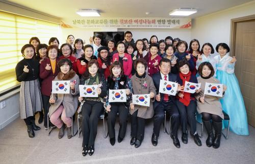 [½Åµ¿¾Æ¹æ¼Û=È«¼øÅ±âÀÚ] (»ç)ºÏÇÑÀÌÅ»ÁÖ¹ÎÀÚ¸³Áö¿øÇùÀÇȸ(ȸÀå ¿ÀŰâ)´Â ÆòÈ­ ÅëÀÏÀ» ¿°¿øÇÏ¸ç ¡®³²ºÏ°£ ¹®È­±³·ù¸¦ À§ÇØ Ä¥º¸»ê ¿©¼º³ª´®È¸ ¿¬ÇÕ ¹ß´ë½Ä¡¯À» ȸ¿ø 50¿©¸í°ú ºÎ»ê½Ã ´ë¿¬µ¿¿¡ À§Ä¡ÇÑ µ¿¿øºôµù ³» Ä¥º¸»ê ¿©¼º³ª´®È¸ ºÎ»ê½ÃÁöºÎ »ç¹«½Ç¿¡¼­ 18ÀÏ °¡Á³´Ù¡¦
