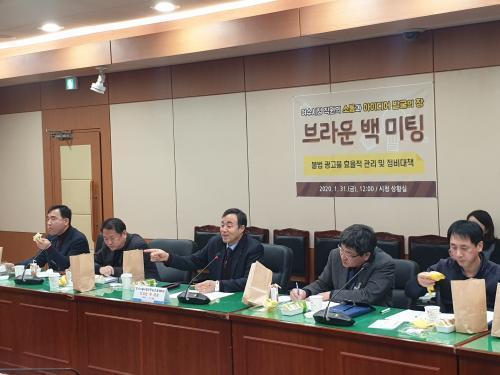 [½Åµ¿¾Æ¹æ¼Û=±è±â³² ±âÀÚ] ¿©¼ö½Ã¿¡ µû¸£¸é, 31ÀÏ ³· 12½Ã ¿©¼ö½Ãû »óȲ½Ç¿¡¼­ ¹®Å¼± µµ½Ã½Ã¼³»ç¾÷´ÜÀå°ú ¾÷¹« °ü°èÀÚ µî 25¸íÀÌ Âü¼®ÇÑ °¡¿îµ¥ ºê¶ó¿î ¹é ¹ÌÆÃÀÌ ¿­·È´Ù. ¡®ºÒ¹ý±¤°í¹°ÀÇ È¿À²Àû °ü¸®¿Í Á¤ºñ ´ëÃ¥¡¯À» ÁÖÁ¦·Î ¿­¸° À̹ø ¸ðÀÓÀº Àλ縻, ÁÖÁ¦ ¹ßÇ¥,¡¦