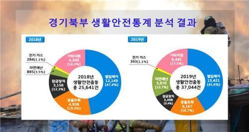 [½Åµ¿¾Æ¹æ¼Û=¹Ú´ë¿µ ±âÀÚ] °æ±âµµºÏºÎ¼Ò¹æÀç³­º»ºÎ(º»ºÎÀå Á¶ÀÎÀç)´Â ÃÖ±Ù 2³â°£ »ýȰ¾ÈÀüÃ⵿ Åë°è¸¦ ºÐ¼®ÇÑ °á°ú, 2018³â 25,641°Ç¿¡¼­ 2019³â 37,044°ÇÀ¸·Î Àü³â´ëºñ 44.5%°¡ Áõ°¡Çß´Ù°í ¹àÇû´Ù. Áö³­ÇØ °æ±âºÏºÎÁö¿ª »ýȰ¾ÈÀüÃ⵿ °Ç¼ö´Â Àüü ±¸Á¶ Ã⵿°Ç¼ö 61,¡¦