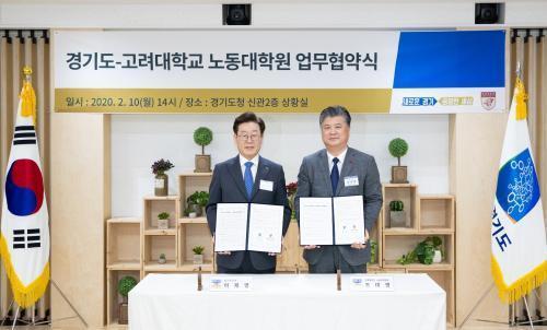 [½Åµ¿¾Æ¹æ¼Û=¹Ú´ë¿µ ±âÀÚ] °æ±âµµ°¡ °í·Á´ëÇб³ ³ëµ¿´ëÇпøÀÌ ¼ÕÀ» Àâ°í, ³ëµ¿½ÇÅÂÁ¶»ç¿Í Á¤Ã¥¿¬±¸, ³ëµ¿±³À°, Àü¹®Àη ¾ç¼º µî ¡®³ëµ¿ÀÌ Á¸Áß¹Þ´Â °øÁ¤ÇÑ °æ±â¡¯ ½ÇÇöÀ» À§ÇÑ Çù·Â »ç¾÷À» ÃßÁøÇØ ³ª°¡±â·Î ÇÕÀÇÇß´Ù. ÀÌÀç¸í °æ±âµµÁö»ç¿Í Á¶´ë¿± °í·Á´ëÇб³ ³ëµ¿¡¦