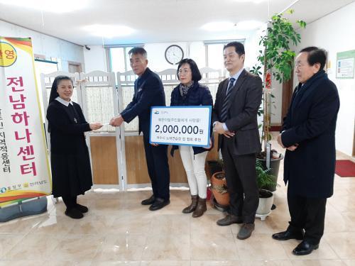 [½Åµ¿¾Æ¹æ¼Û=¹Ú±¤¿Á ±âÀÚ] (»ç)Àü³²³ë·¡¿¬½ÀÀå¾÷Çùȸ ¿©¼öÁöºÎ(ÁöºÎÀå °­´ëö)°¡ 10ÀÏ Àü³²Çϳª¼¾ÅÍ ¿©¼öÁö¿ª»ç¹«¼Ò¿¡ 200¿©¸¸ ¿øÀÇ »ç¶û ³ª´® ÈÄ¿ø±ÝÀ» Àü´ÞÇß´Ù. 11ÀÏ ¿©¼ö½Ã¿¡ µû¸£¸é (»ç)Àü³²³ë·¡¿¬½ÀÀå¾÷Çùȸ ¿©¼öÁöºÎ´Â °ü³» 147°³ ³ë·¡¿¬½ÀÀåÇùȸ ȸ¿øµéÀÇ ¸¶¡¦