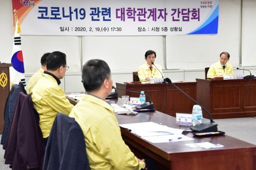 [½Åµ¿¾Æ¹æ¼Û=È«¼øÅ±âÀÚ] ÁøÁֽô ½ÅÇб⠰³°­À» ¸Â¾Æ Áß±¹À¯ÇлýµéÀÌ ´ë°Å ÀÔ±¹ÇÒ °æ¿ì¿¡ ´ëºñÇÑ Äڷγª19 ¿¹¹æ´ëÃ¥À» À§ÇØ Áö³­19ÀÏ ¿ÀÈÄ 5½Ã 30ºÐ ½Ãû »óȲ½Ç¿¡¼­ °¢ ´ëÇаü°èÀÚµé°ú °£´ãȸ¸¦ °³ÃÖÇß´Ù. À̹ø °£´ãȸ´Â Á¶±ÔÀÏ ÁøÁÖ½ÃÀåÀ» ºñ·ÔÇÑ ½Ã°ü°èÀÚ 8¸í°ú¡¦