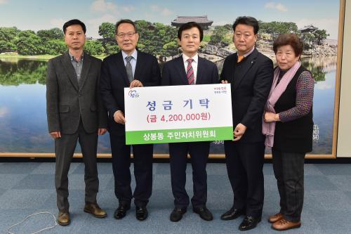 [½Åµ¿¾Æ¹æ¼Û=±è´ë¿ø] ÁøÁֽà »óºÀµ¿ÁÖ¹ÎÀÚÄ¡À§¿øÈ¸(À§¿øÀå ±è±â½Ä)´Â Áö³­ 20ÀÏ Àú¼ÒµæÃþ Àڳฦ À§ÇÑ ÀåÇÐ±Ý 420¸¸¿øÀ» ÁøÁֽú¹ÁöÀç´Ü¿¡ ±âŹÇß´Ù. À̳¯ ÀåÇбÝÀº Áö³­ÇØ 8¿ù 28ÀÏ ÁÖ¹ÎÀÚÄ¡À§¿øÈ¸¿¡¼­ <Á¦8ȸ ¿Ïµµ Ư»ê¹° Á÷°Å·¡ÀåÅÍ>¸¦ ¿î¿µÇÏ¿© ¾òÀº ¼öÀͱÝÀ¸·Î¡¦